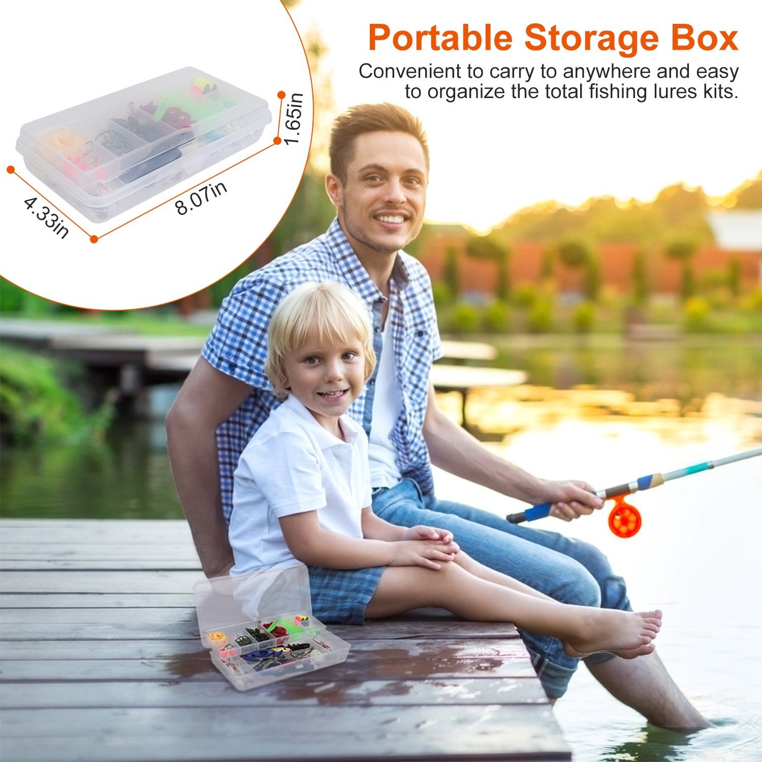 *Portable Storage Box*:With a storage box of 8.07x4.33x1.65in; convenient to carry and organize the total fishing lures kits. Easy to carry to anywhere you want.