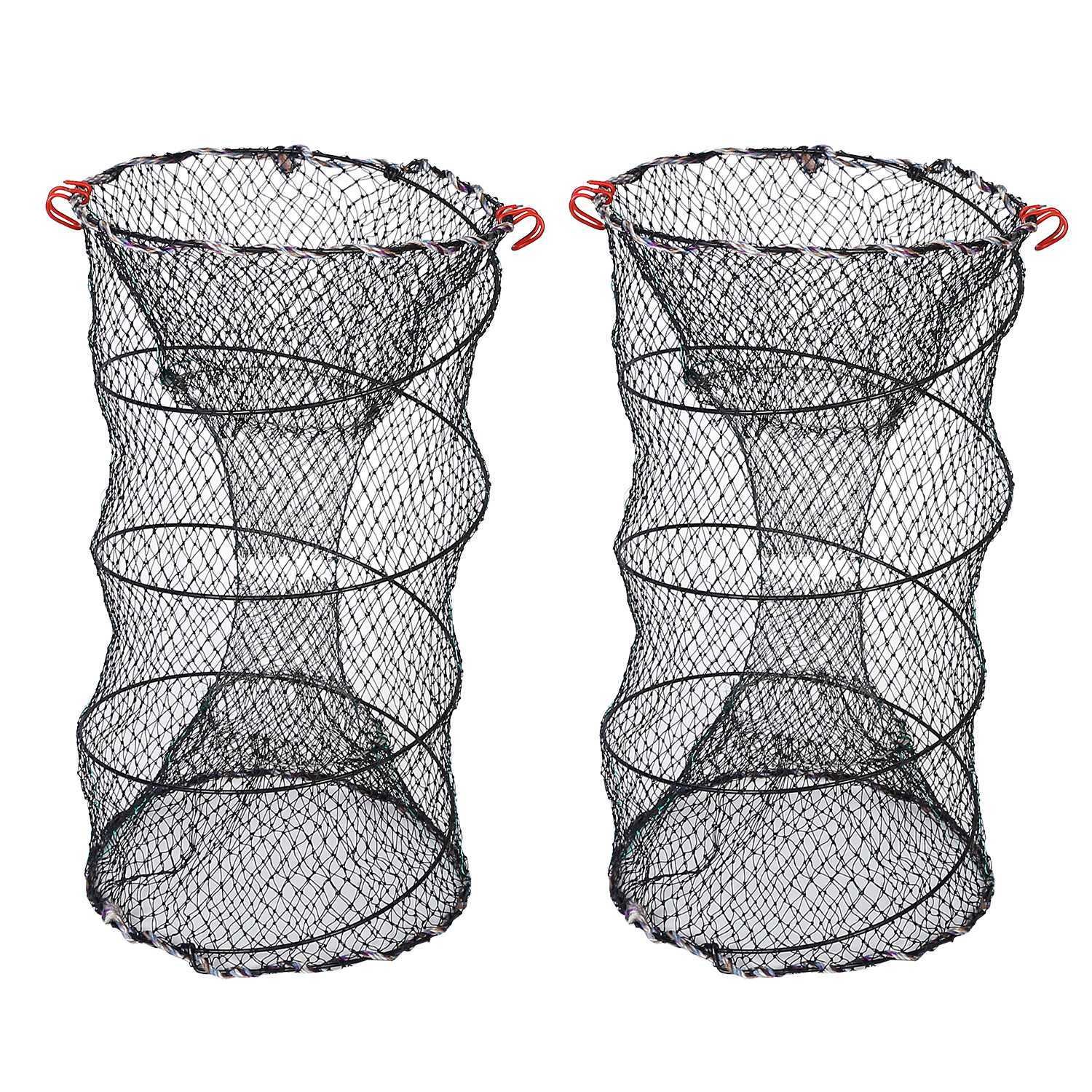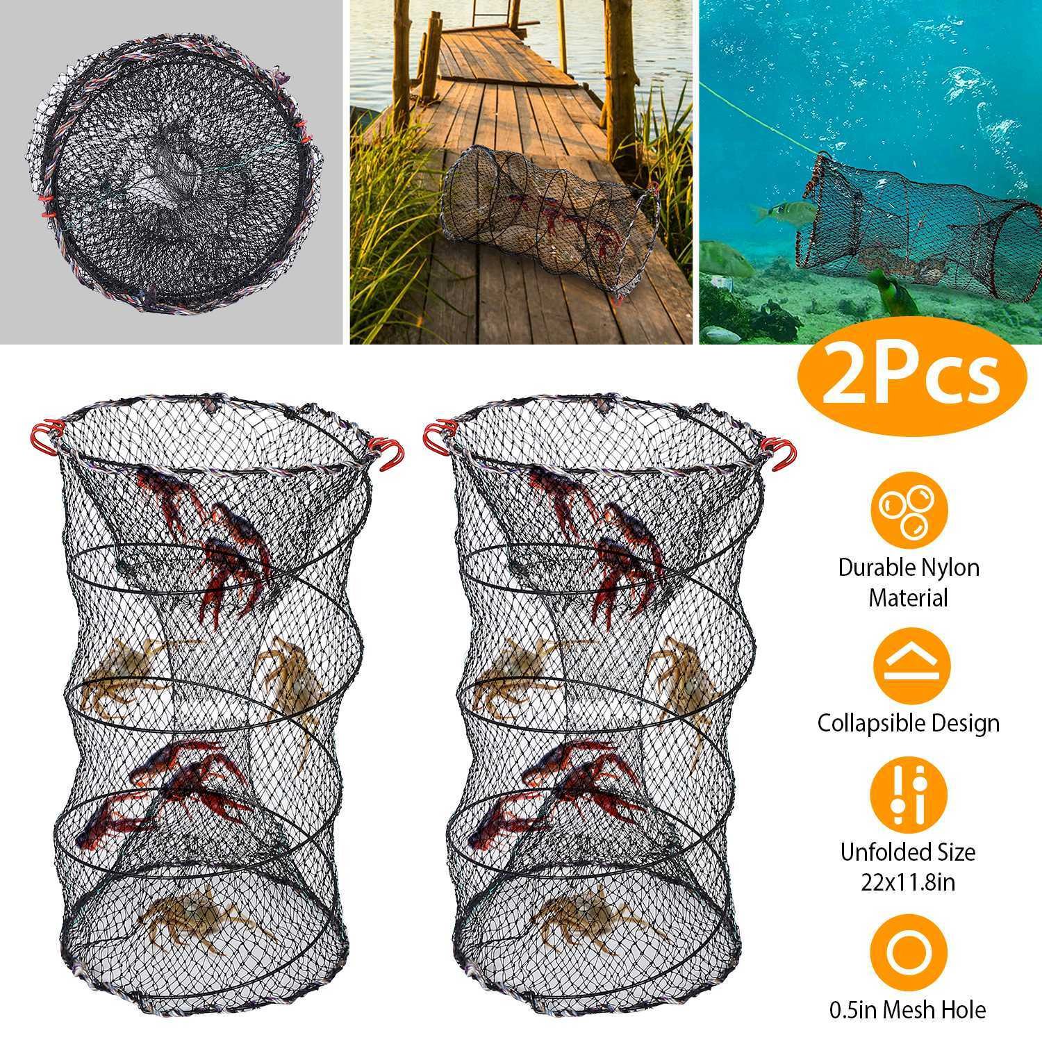 2Pcs Crab Trap Bait Nets Shrimp Prawn Crayfish Lobster Bait Fishing Pot Cage Basket 22x11.8in