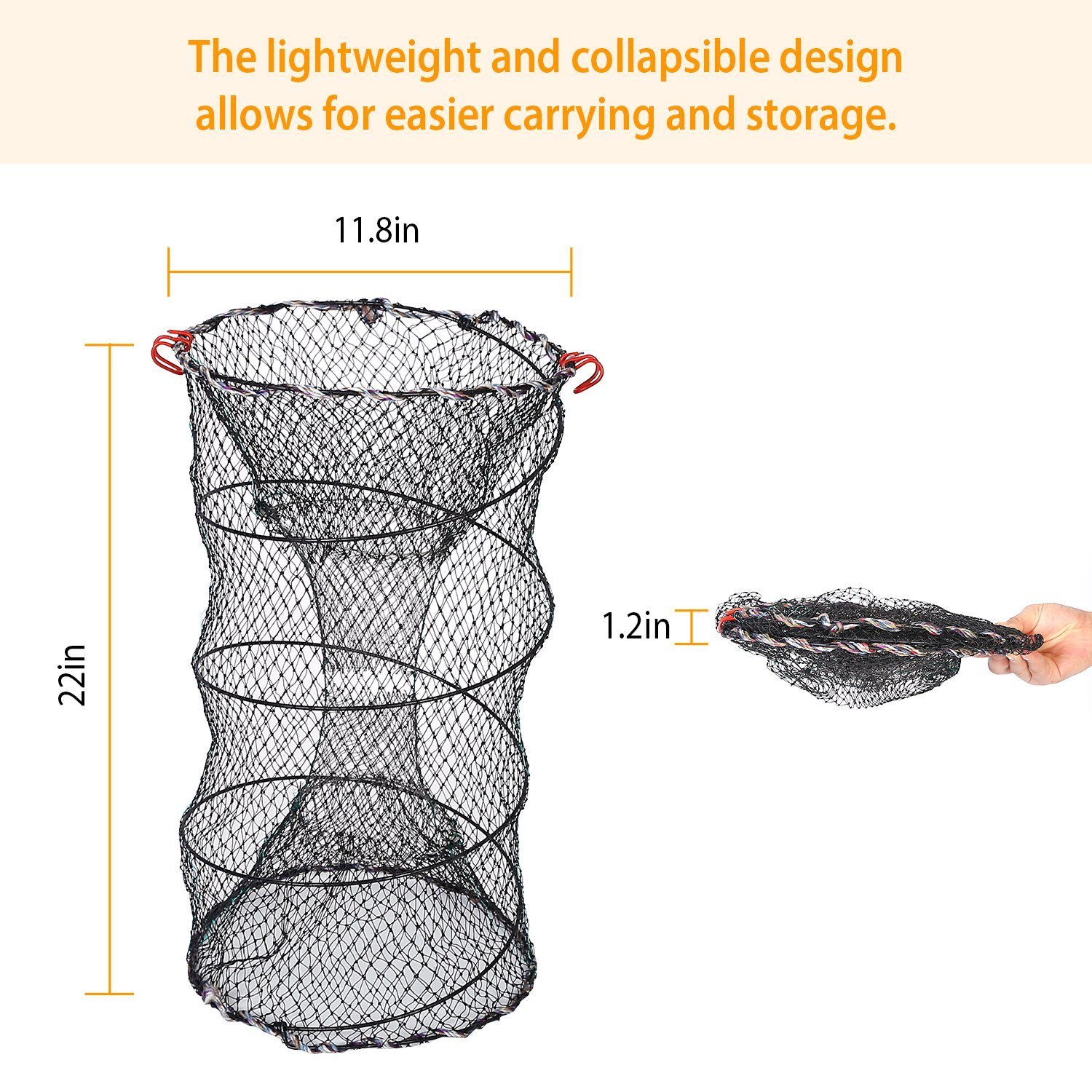 *Large Volume*:Its unfolded size measures 22x11.8in,contributing to a large volume of catch. Just cast the trap at the right place for a full catch.
