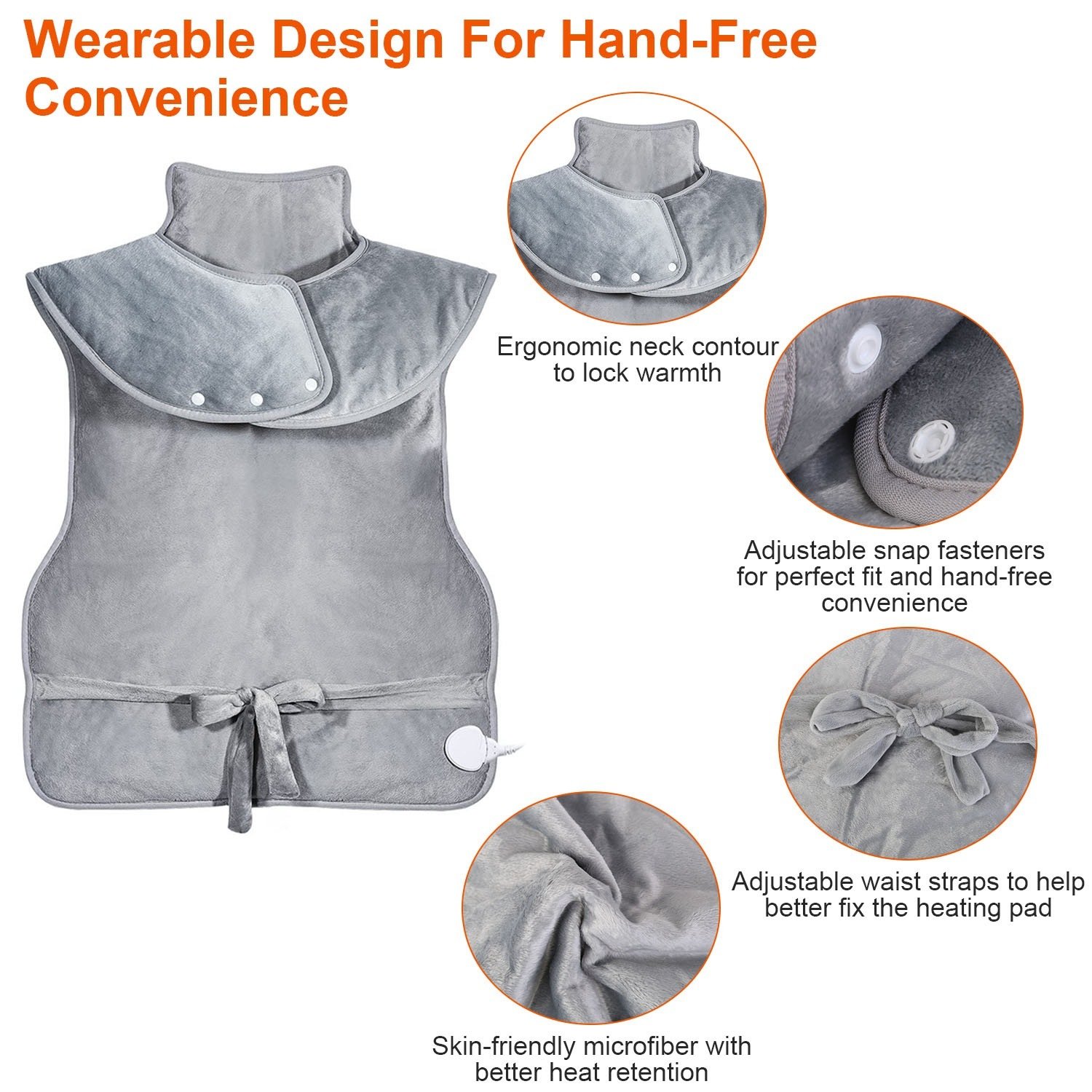 *All-round Heating for Pain Relief*:With a size of 36.6x22in; this heating pad offers complete coverage to your neck; shoulder; and back. It can help relieve chronic back pain; muscle spasms; joint stiffness; and other conditions by promoting consistent circulation throughout the body.