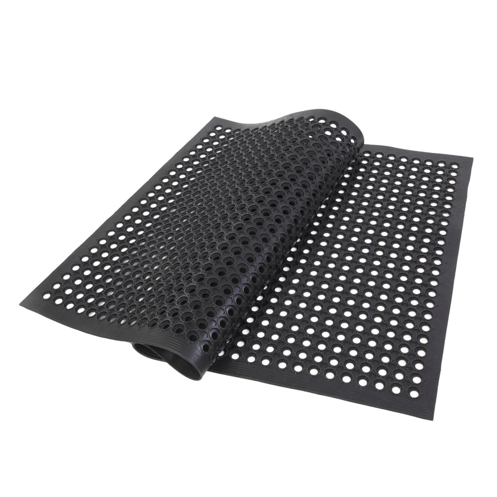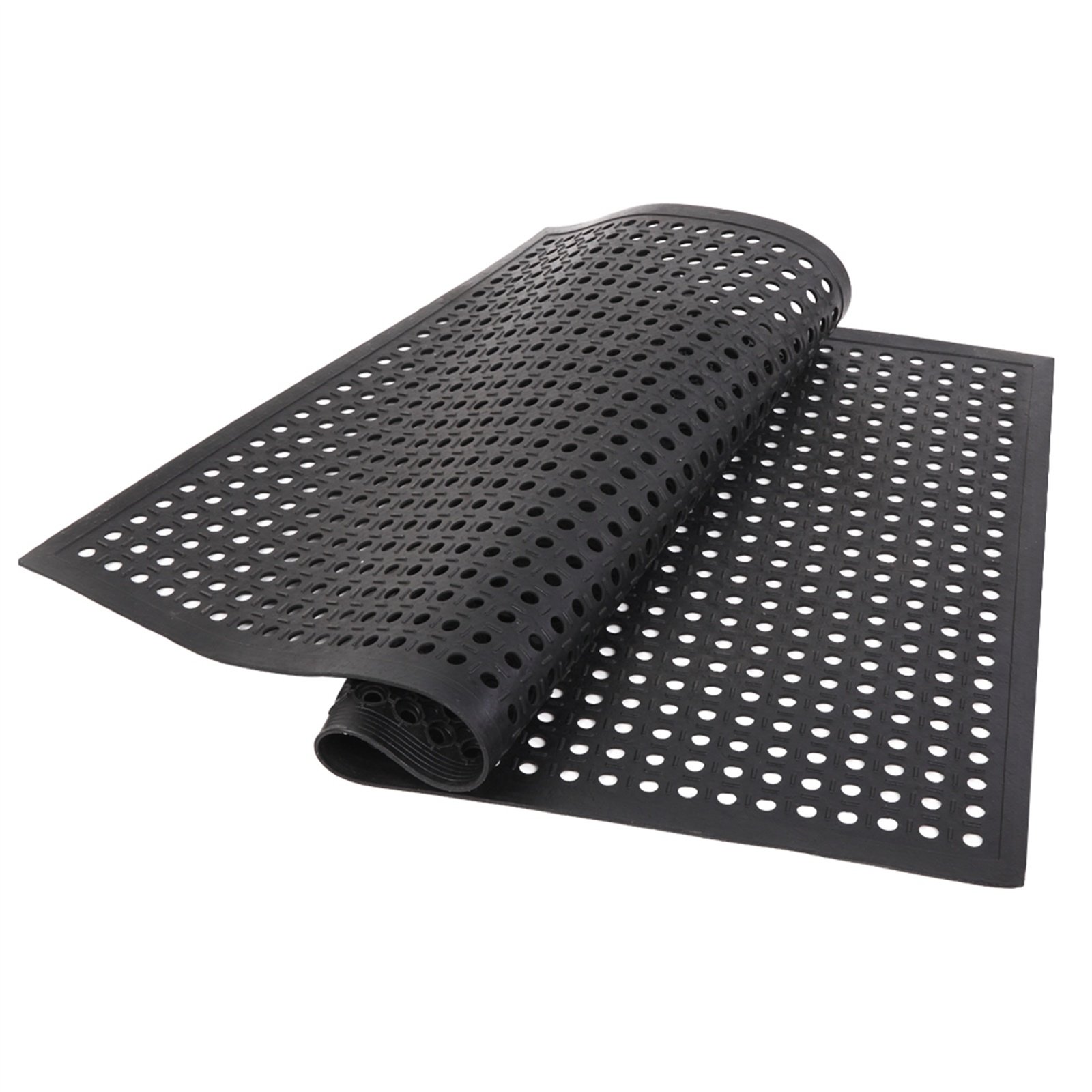 The Bar Kitchen Industrial Multi-functional Anti-fatigue Drainage Rubber Non-slip Hexagonal Mat features large hexagonal drainage holes that help to reduce the amount of slippery liquids and oils left on the floor and prevent dangerous accidents. Hence, it is ideal for uses in bar, kitchen, restaurant, as well as warehouse or other industrial areas where moisture and heavy foot traffic are a problem. Made of high-grade, eco-friendly rubber, it is sustainable for long-lasting use. Even better, it is water resistant and easy to wash clean. Don't hesitate to buy now! It surely is worth your investment!