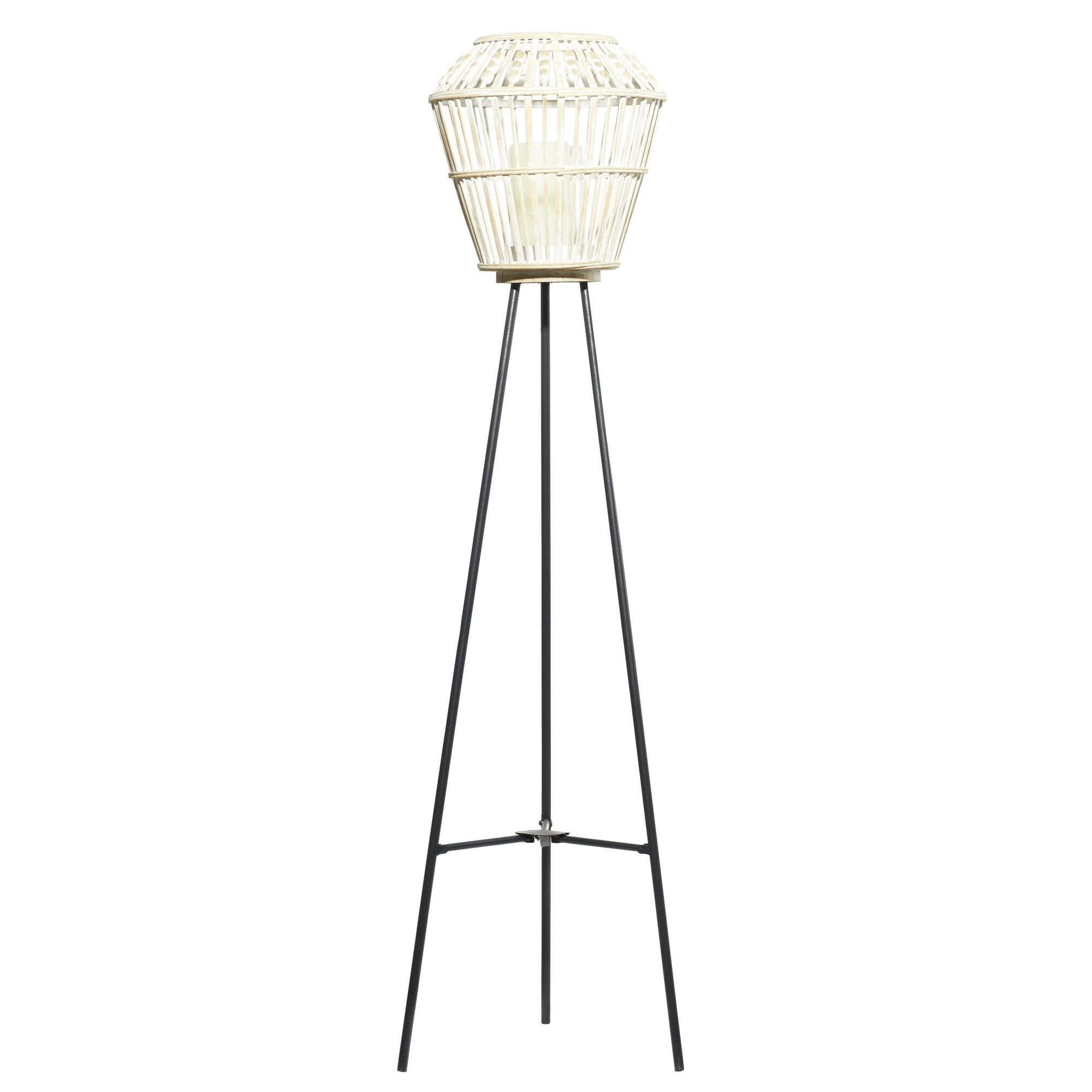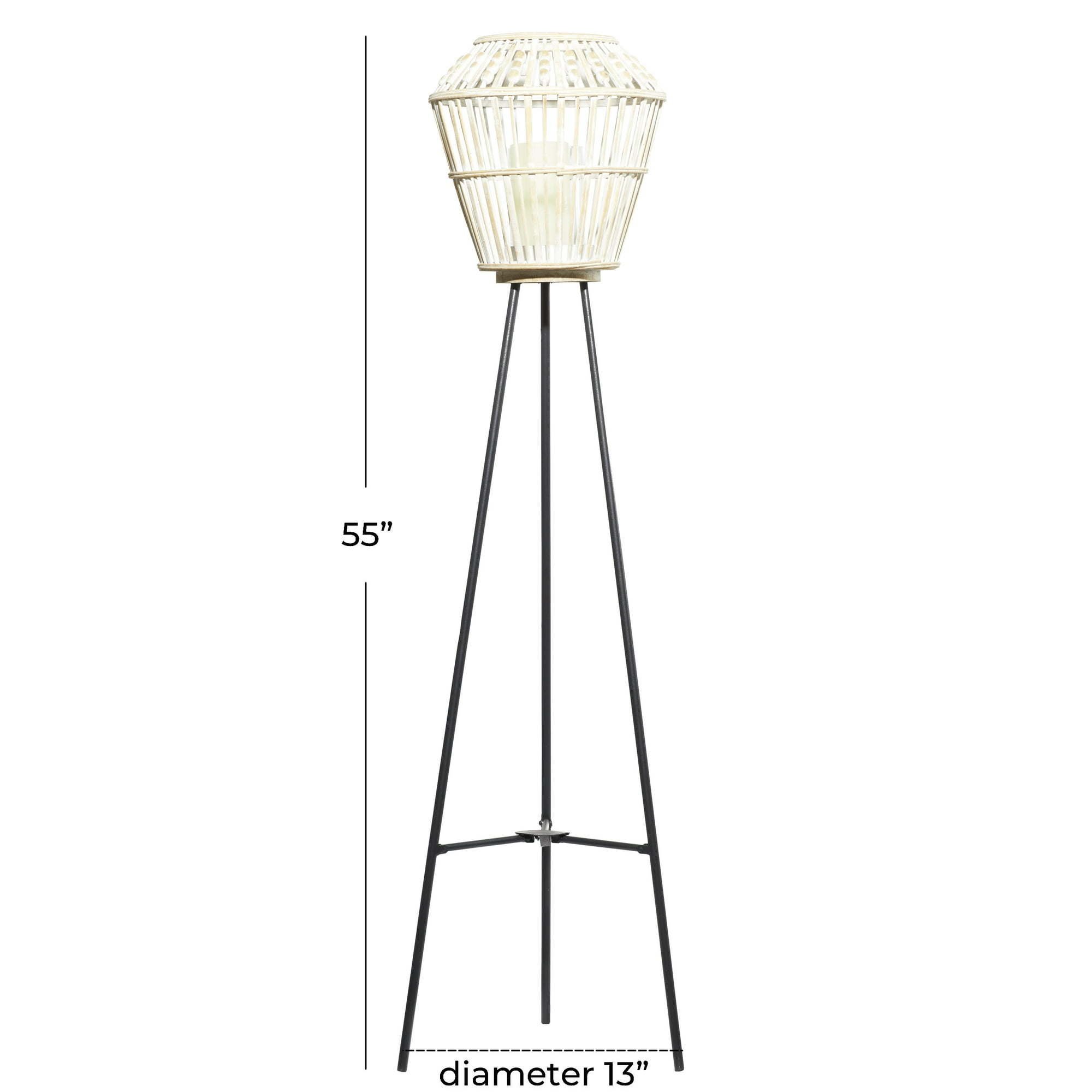 DecMode 13"W, 55"H Metal Natural Candle Lantern, White, 1 - Piece is a unique addition to your stylish home. Delight your guests and make any occasion extra special by adding a lighted or flameless candle to this lantern. Made with a sturdy base, it is perfect for creating an elegant atmosphere at your table top or mantel . Set this elegant lantern in your coastal style inspired rooms to create the perfect mood lighting. Designed with a stable metal tripod leg. Designed with black rubber stoppers at the base that prevent scratching furniture and table tops, as well as sliding around. Floor lantern candle holder can hold 1 candle. This item ships in 1 carton. Suitable for indoor use only. Farmhouse-themed style.