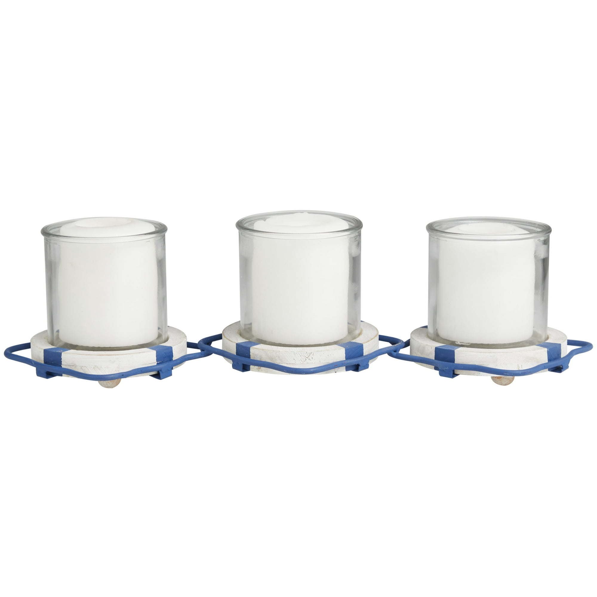 DecMode 3 Candle Blue Metal Buoy Distressed 3 Linked Candle Holder with White Wood Accents makes a perfect addition to any home