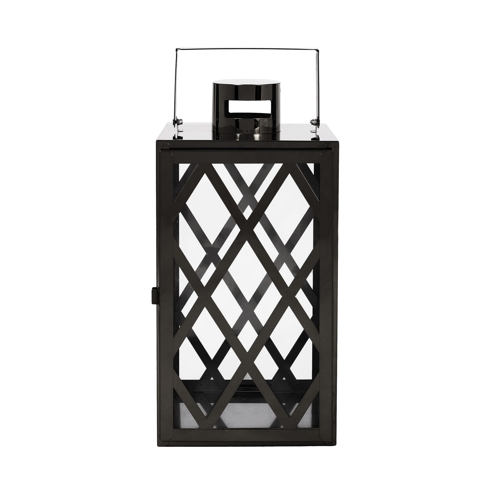 Create a stunning tablespace for your outdoor dining set or line your walkways with delightful appeal. Our lantern is made with adorned stainless steel and tempered glass, making this a beautifully refined accent piece that will illuminate your space with charm and style. This features a stunning lattice pattern, a flat handle, and is completed with a lovely complementing finish. Bringing warmth and brightness to your backyard or patio, this stunning piece turns any home into a light and airy space.
