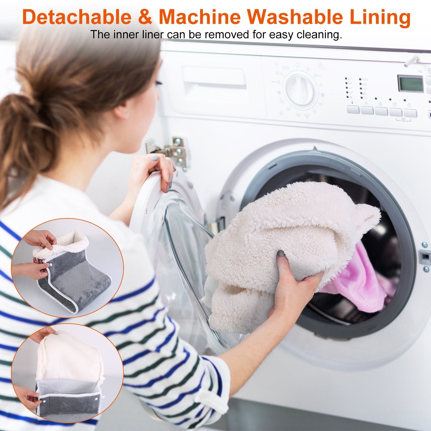 *Ultra Soft Fabric*:Crystal super soft velvet surface and cotton fleece velvet lining make the foot warmer skin-friendly and comfortable to use. And the inner liner can be removed for machine washable. Please wipe with damp cloth when the outer surface is dirty.(The foot warmer can’t be washed in water)