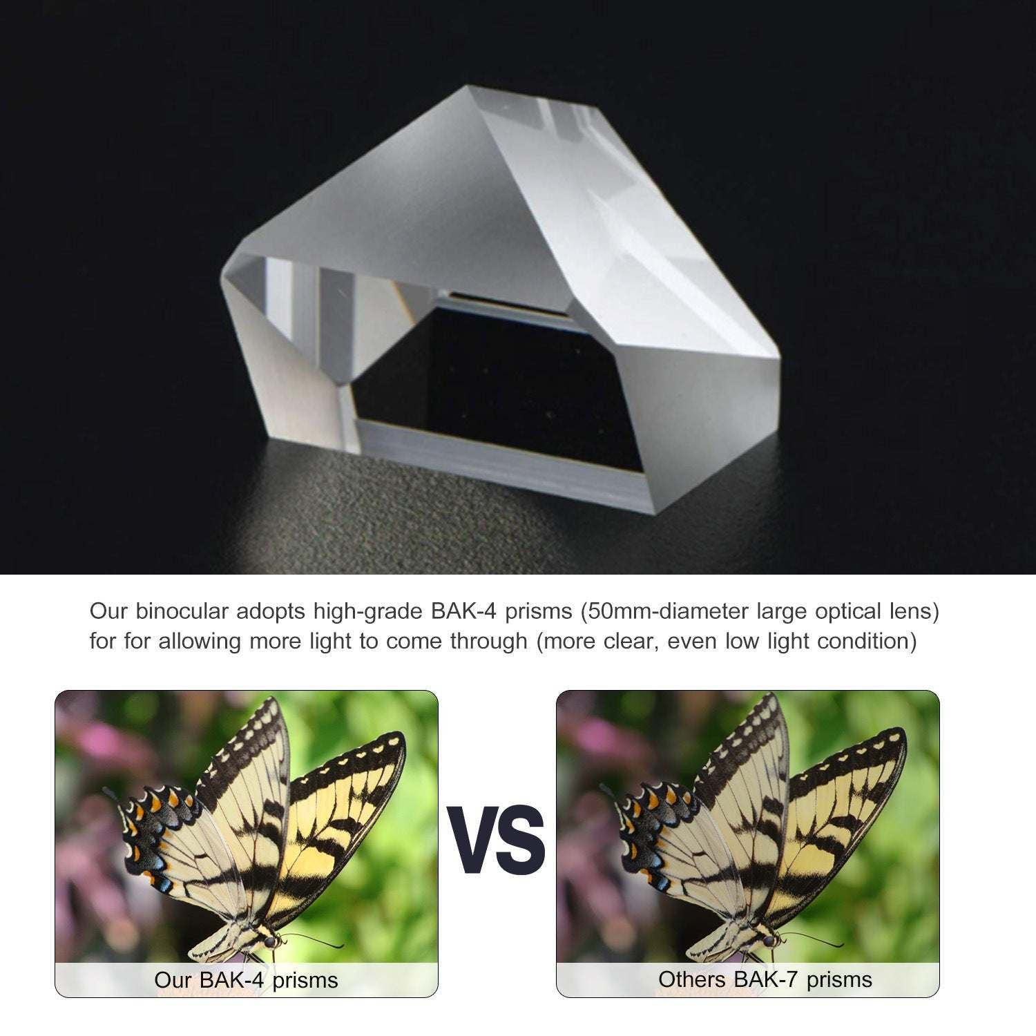 *Large Field of View*:Our binocular adopts high-grade BAK-4 prisms. With a large field of view(268Ft / 1,000Yds),it is optimal for watching fast-moving things.