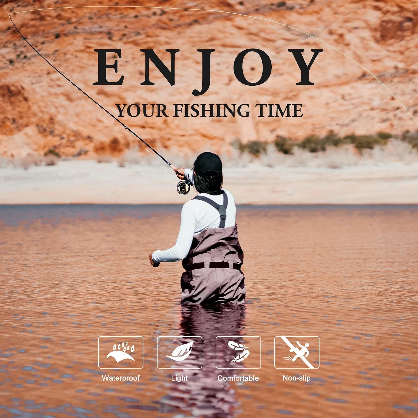 2.LIGHTWEIGHT - New 70D nylon and PVC material weighs 35% lighter than traditional rubber waders, more flexible in water and less energy spent, allows you to wear warmer clothes and hike in the river more comfortably.
