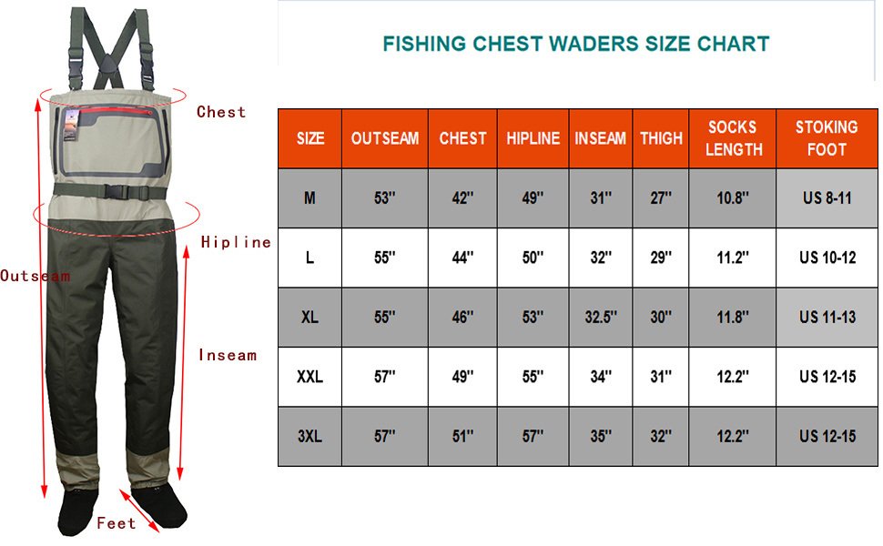 Fly Fishing Chest Waders Breathable Stocking Foot for Men and Women